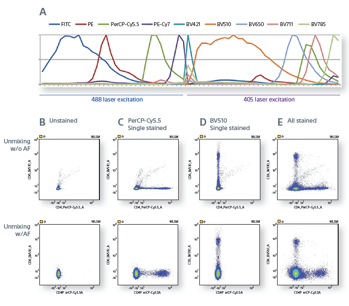 Figure 3. Unmixing auto-FL in 9-color bone marrow panel.
