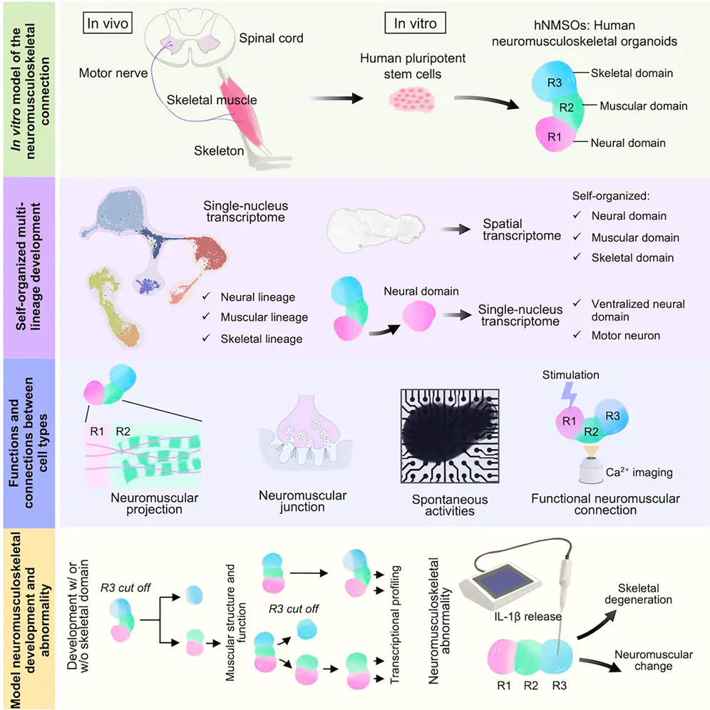 Reference: Generation of self-organized neuromusculoskeletal tri-tissue organoids from human pluripotent stem cells. Yin, Yao et al. Cell Stem Cell, Volume 32, Issue 1, 157 – 171.e8