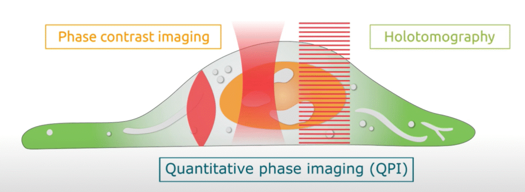 NanoLive 的 3D Cell Explorer 使用低功率雷射 (Low-power Laser, 520 nm, 0.1 mW),從多個角度照射樣本,測量穿過細胞的光波的相位延遲 (Phase Delay)。由於細胞內不同結構,例如細胞核、細胞質、細胞膜等,具有不同的折射率 (RI),因此光波在穿過這些結構時會產生不同的相位延遲。