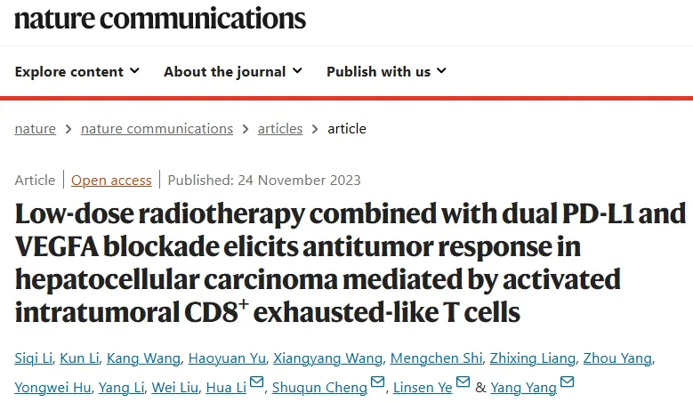 Low-dose radiotherapy combined with dual PD-L1 and VEGFA blockade elicits antitumor response in hepatocellular carcinoma mediated by activated intratumoral CD8⁺ exhausted-like T cells