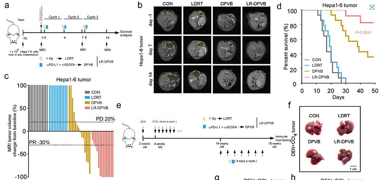 LDRT-DPVB 組合(LR-DPVB)在所有模型中均優於單獨 DPVB 治療,展現更強的腫瘤抑制效果與更佳的存活率。