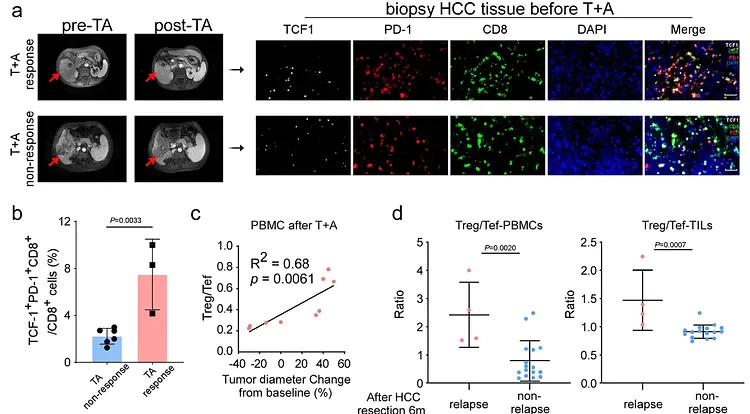 • Treg/Tef 比值可作為 T+A 治療反應與整體預後的預測指標